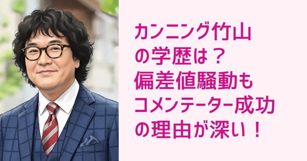 お笑い芸人として活躍しながら、多数の情報番組でコメンテーターとしても活躍するカンニング竹山さん。 そんな人気タレント・カンニング竹山さんの学歴ですが、予備校中退という経歴や最近の偏差値騒動が話題になっていますよね。 また、学歴がないのに、... -