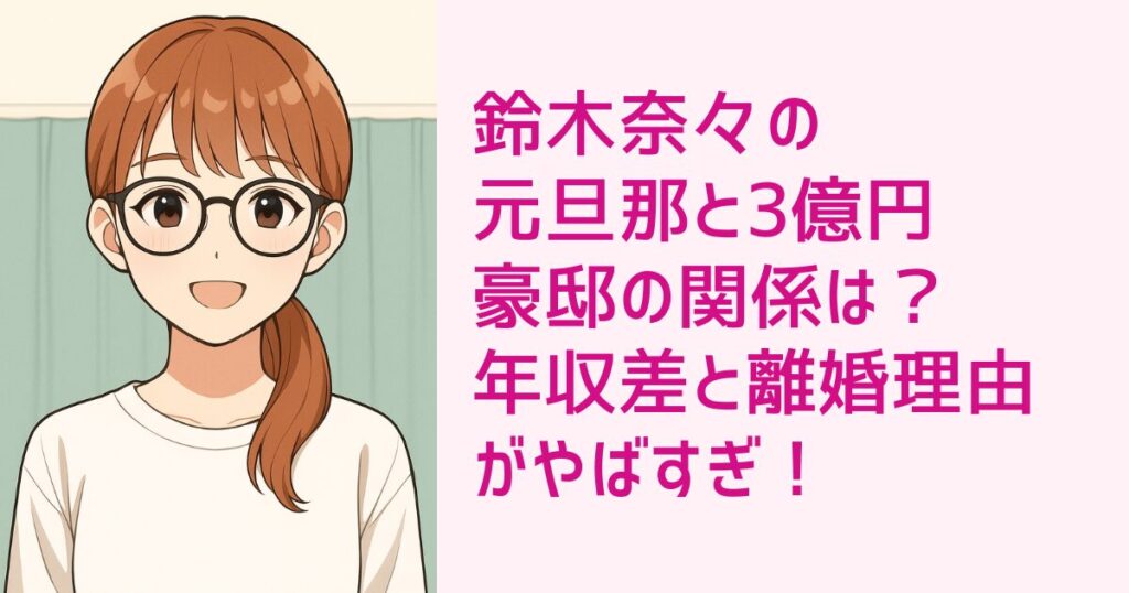 バラエティ番組で活躍中のタレント・鈴木奈々さん。 そんな人気タレント鈴木奈々さんが2025年に都内の3億円豪邸を購入したことが話題になりましたが、元旦那との関係や財産分与はどうなっているのか気になりますよね。 また鈴木奈々さんと元旦那の年収差が... -