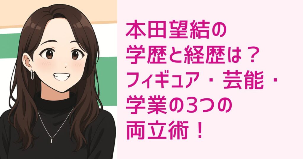 女優・フィギュアスケーター・タレントとして活躍する本田望結さん。 そんな多才な本田望結さんの学歴や経歴ですが、早稲田大学に進学したことで大きな話題となりましたよね。 また本田望結さんは、フィギュアスケート・芸能活動・学業という3つを同時にこ... -