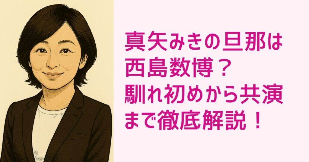 宝塚歌劇団出身で女優として活躍する真矢みきさん。 そんな人気女優真矢みきさんの旦那さんですが、西島数博さんという方なのか気になりますよね。 また真矢みきさんと旦那さんは、どのような馴れ初めで結ばれ、夫婦共演もされているという話もありますが... -