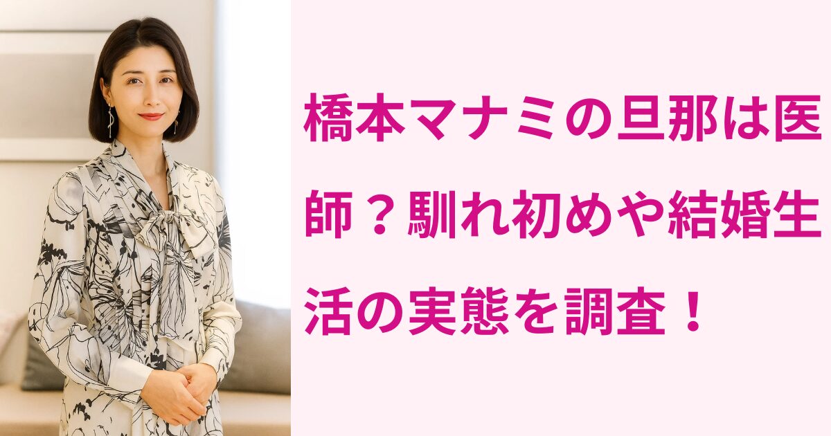 リサーチしてみたら、橋本マナミさんの旦那さんは確かに医師で、一目惚れから始まった素敵な馴れ初めがあり、現在も工夫しながら夫婦関係を築いていることが分かったので、ぜひ最後まで読んでいってください!