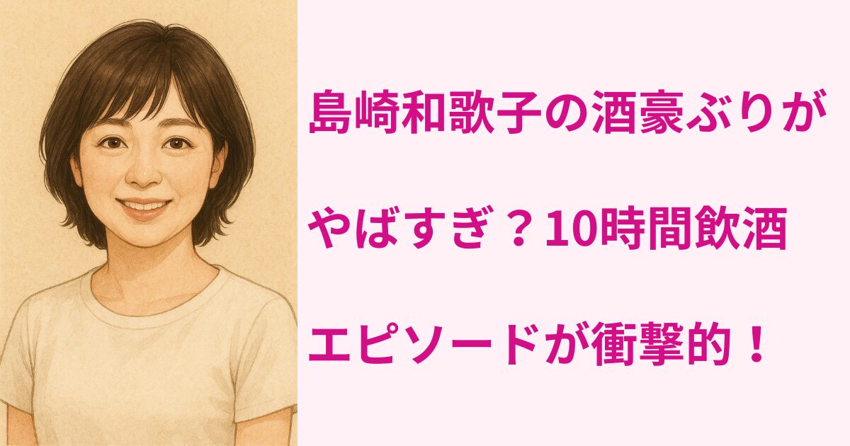 今回は、島崎和歌子さんの酒豪ぶりがやばすぎる件や、10時間飲酒エピソードが衝撃的だった内容についてお伝えしてきました。